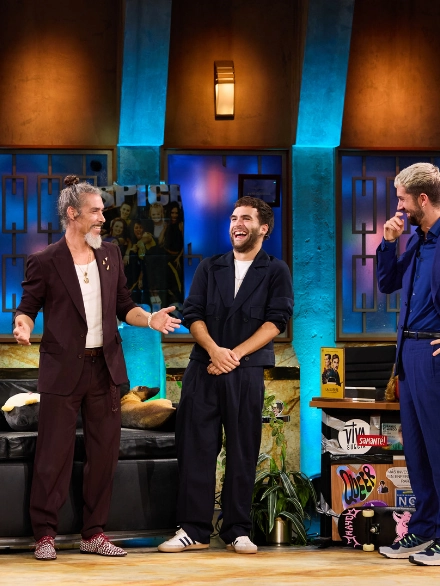 En un entorno televisivo de máxima visibilidad, los broches de oro amarillo de ECH Jewelry se integran con naturalidad en el gesto y la actitud.