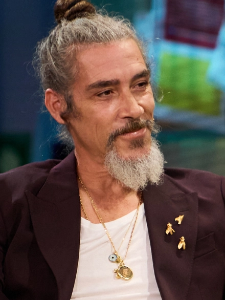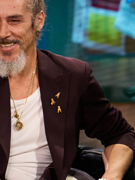 Durante su entrevista en el programa La Revuelta, Óscar Jaenada aparece con piezas de ECH Jewelry integradas en su estilismo.