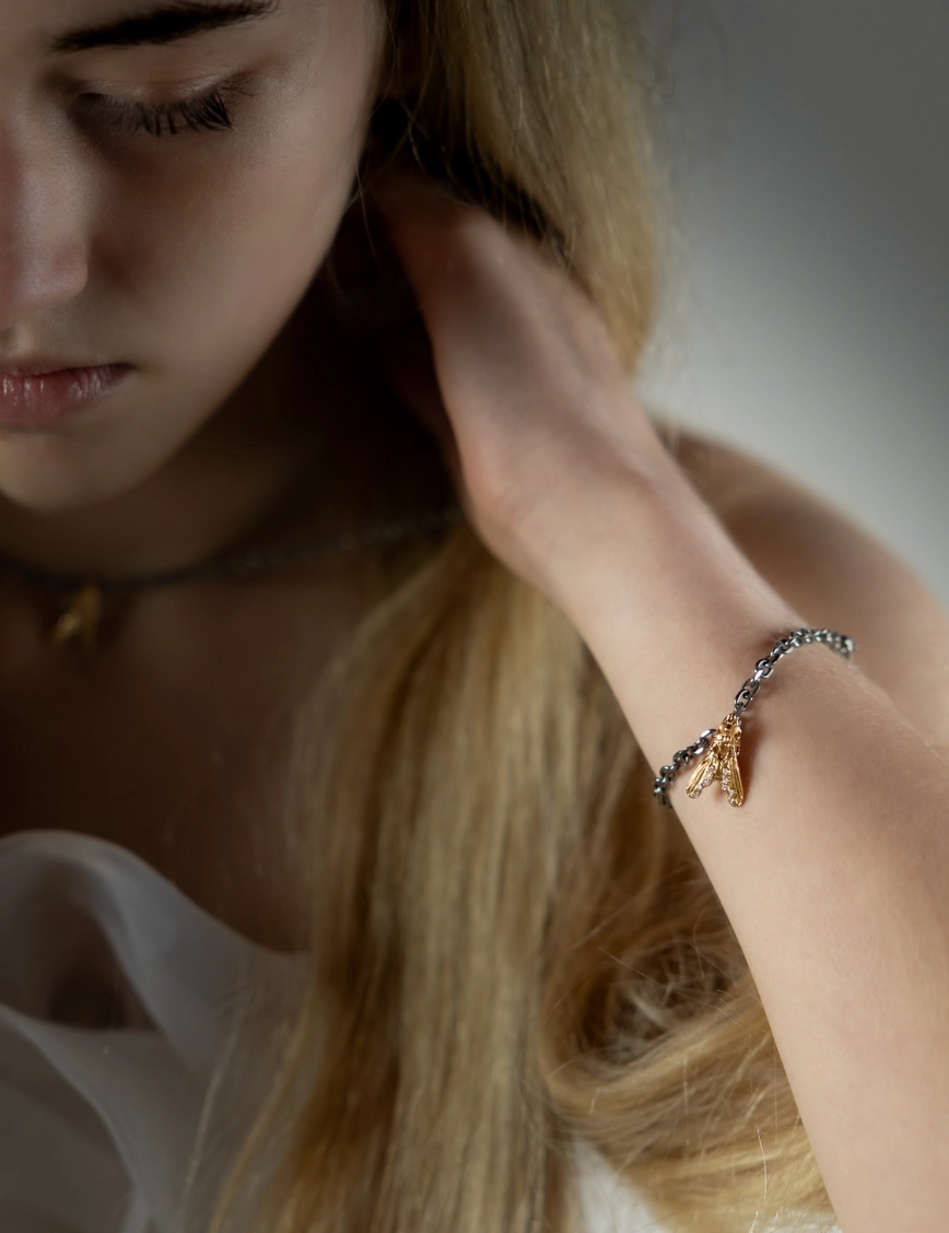Titanium Bracelets Set with Yellow Gold Fly Motifs and Diamonds