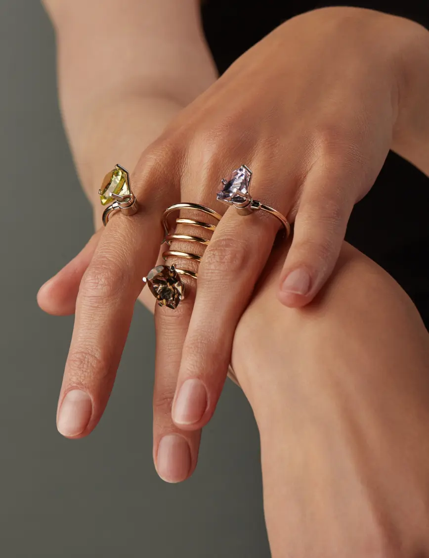 Yellow Gold Ring with Smoked Quartz and Diamonds