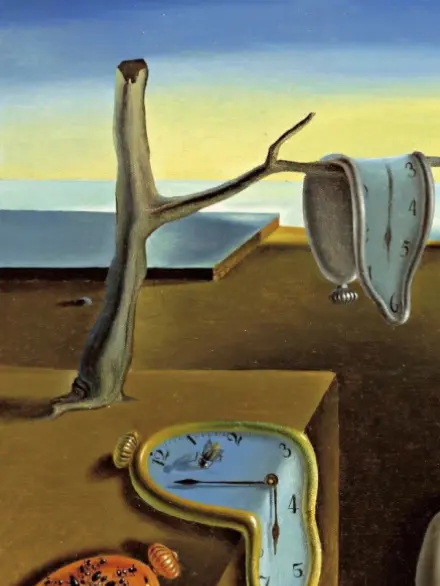 In The Persistence of Memory (1931) by Salvador Dalí, it rests on a melting clock — tiny but haunting. Time itself, unraveling.