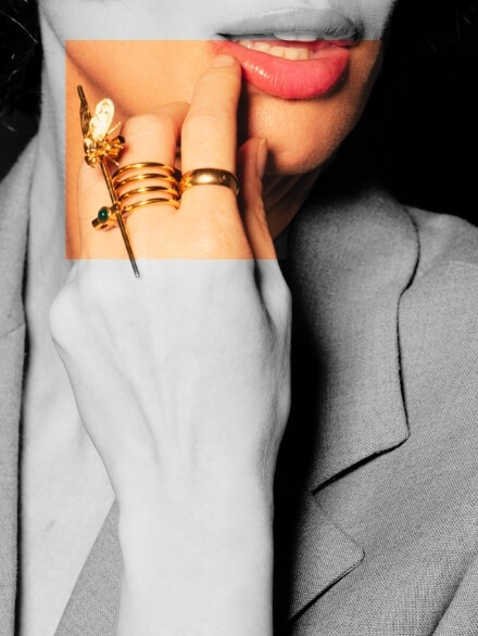 That same balance between strength and grace extended beyond the editorial pages — to her on-screen presence. On the big screen, in interviews, or on red carpets, Paz Vega radiates an elegance that never feels contrived. A true style icon within and beyond Spain, she has maintained a consistent, resolute image — one without concessions. In Rita, she wore ECH Jewelry’s Big Fly yellow gold ring: it doesn’t accompany — it defines. Each piece acts as a subtle interruption, an alternate focus, a signature.