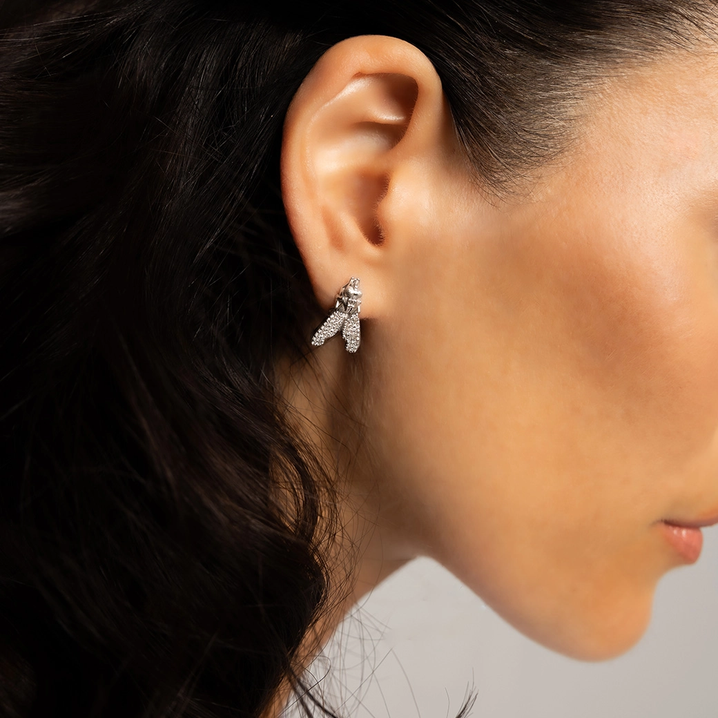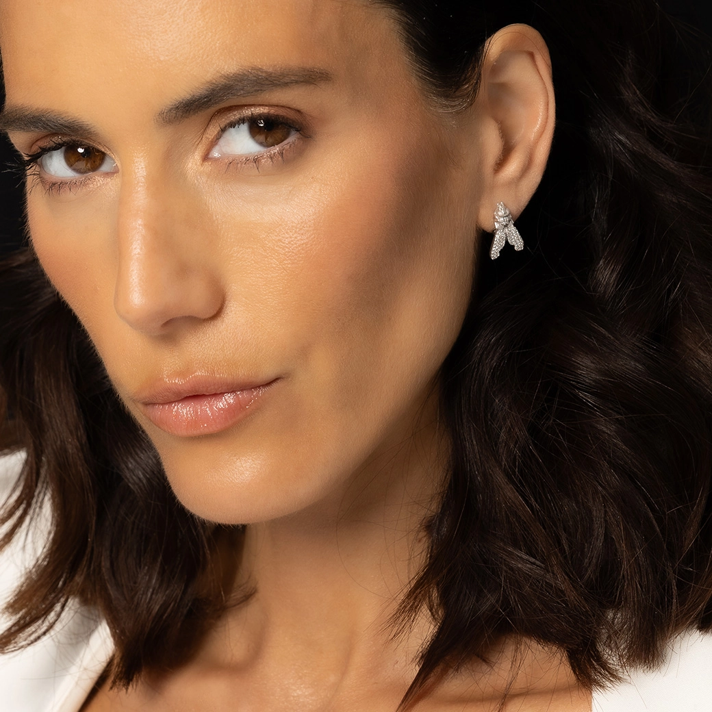 These white-gold diamond earrings reinterpret nature through the purity of geometry. The 18K white gold enhances the clarity of the pavé and sharpens the architecture of the piece, while the ethical diamonds offer a serene, conscious, and timeless radiance.