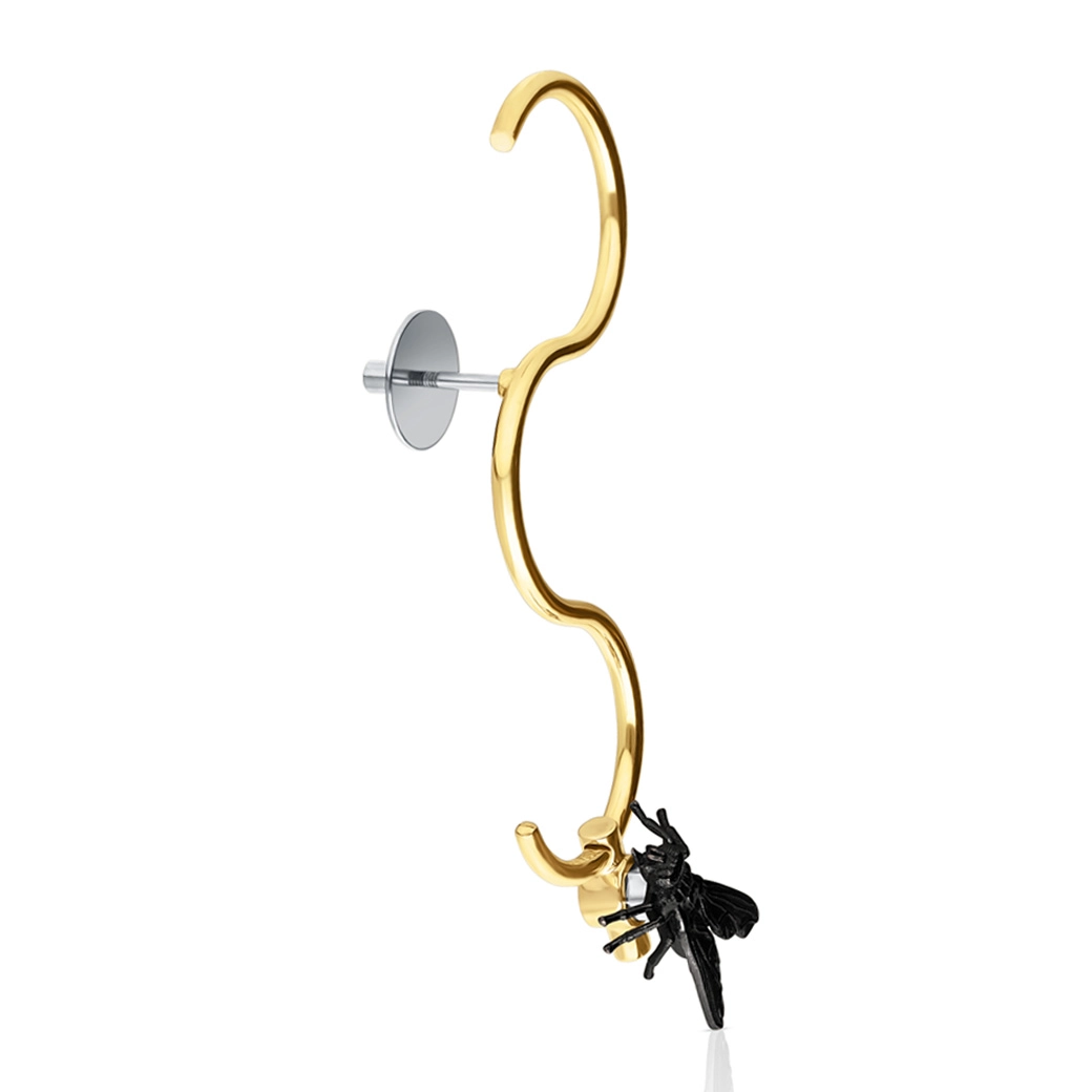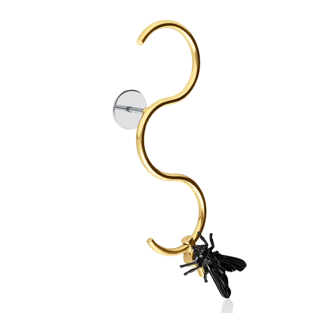 Fly in black gold crowns the final point of the serpentine path, balanced in proportion. Serpentine body in 18k yellow gold, designed to adapt fluidly to the earlobe with controlled tension. Finished with a steel post and screw-back closure, ensuring stability and comfort.