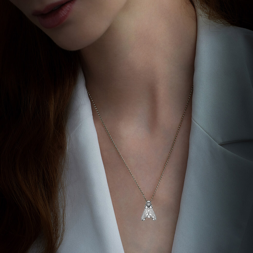 This unisex white gold necklace reveals the unconventional beauty of the Fly Classique collection — the most representative line of ECH Jewelry, where detail and hyperrealism transform nature into jewelry.