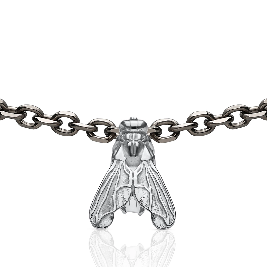 At the center, an 18 mm motif conceived as a symbol. The 3.8 mm titanium chain holds the 18K white gold with contemporary precision.