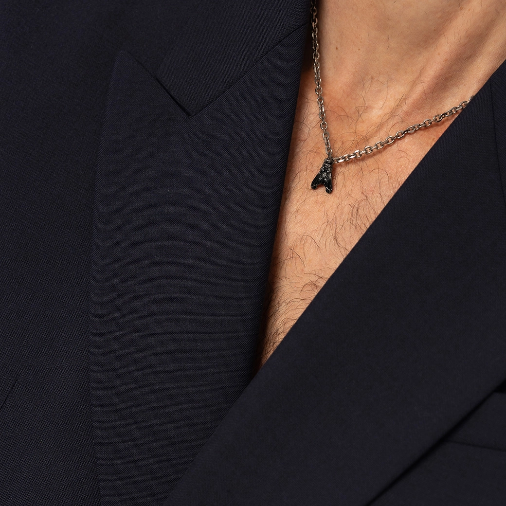 Motif of 18 mm in 18K black gold, polished to realistic perfection. Titanium chain of 3.8 mm and 50 cm, sculptural and strong.