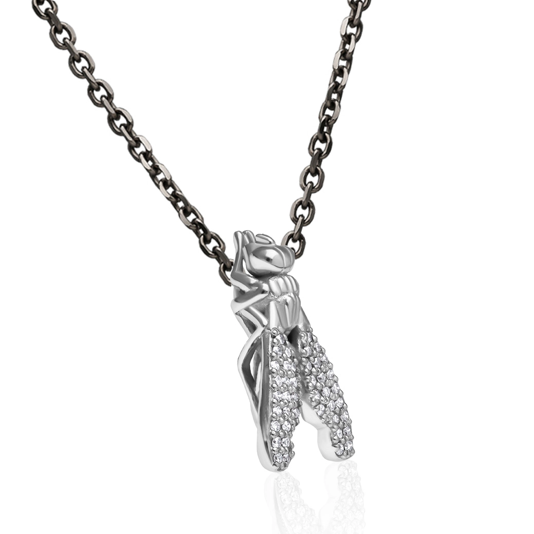 A 18 mm motif in yellow gold, sculpted with organic precision, features an exquisite pavé of ethical brilliant-cut diamonds on its wings. Held by a titanium chain of 1.8 mm and 42 cm, light and precise.
