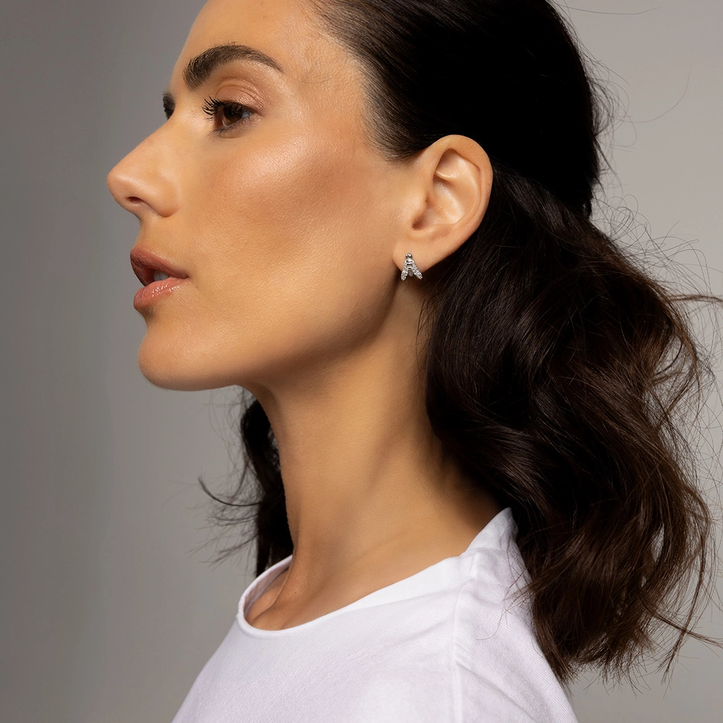 This white gold diamond earring is worn with the conviction of what is essential — a piece that shines boldly and reveals the intelligence of its wearer.