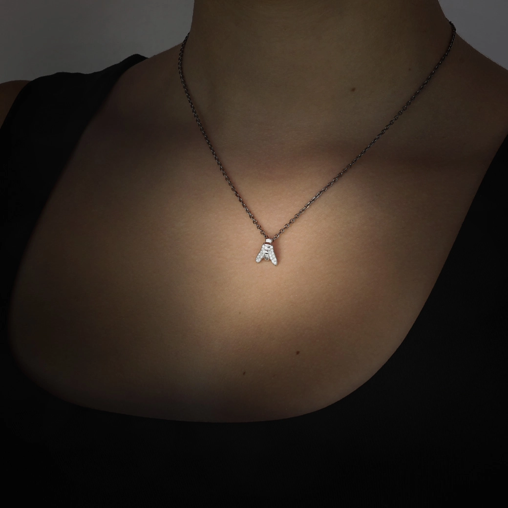 Titanium refines intention. This titanium and diamond necklace can be worn alone as an essential piece or combined with other lengths to add rhythm and strength to any look. Titanium does not replace gold — it enhances it with contemporary force and technical character. Ethical diamonds multiply the contrast between brilliance and structure. A unisex necklace designed for those who seek visual impact and sculptural strength. This white gold and diamond necklace is both bold and essential: a statement that asserts itself with natural ease.