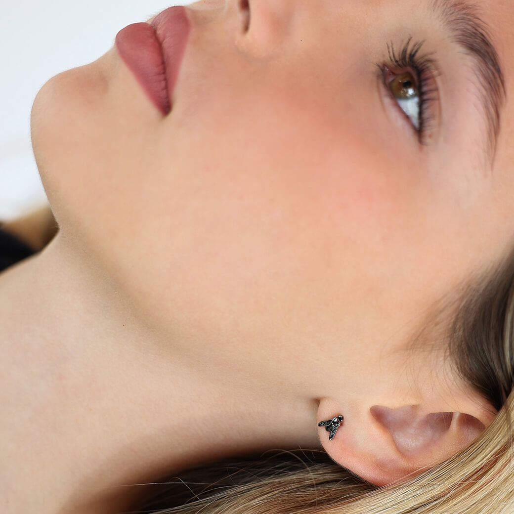 This 18K black gold earring is a unisex piece from the Essential collection, within the miniFLY line. An individual jewel — deliberately unique. The Essential collection distills the identity of ECH Jewelry into a single presence, while the miniFLY line represents its most reduced and exact expression.