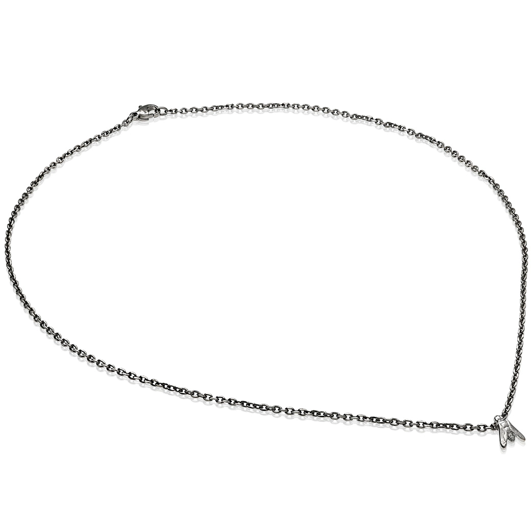 This white gold necklace, unisex and assertive, is elevated by a robust titanium chain that amplifies its strength. Part of the Essential collection. miniFLY at its most graphic expression.
