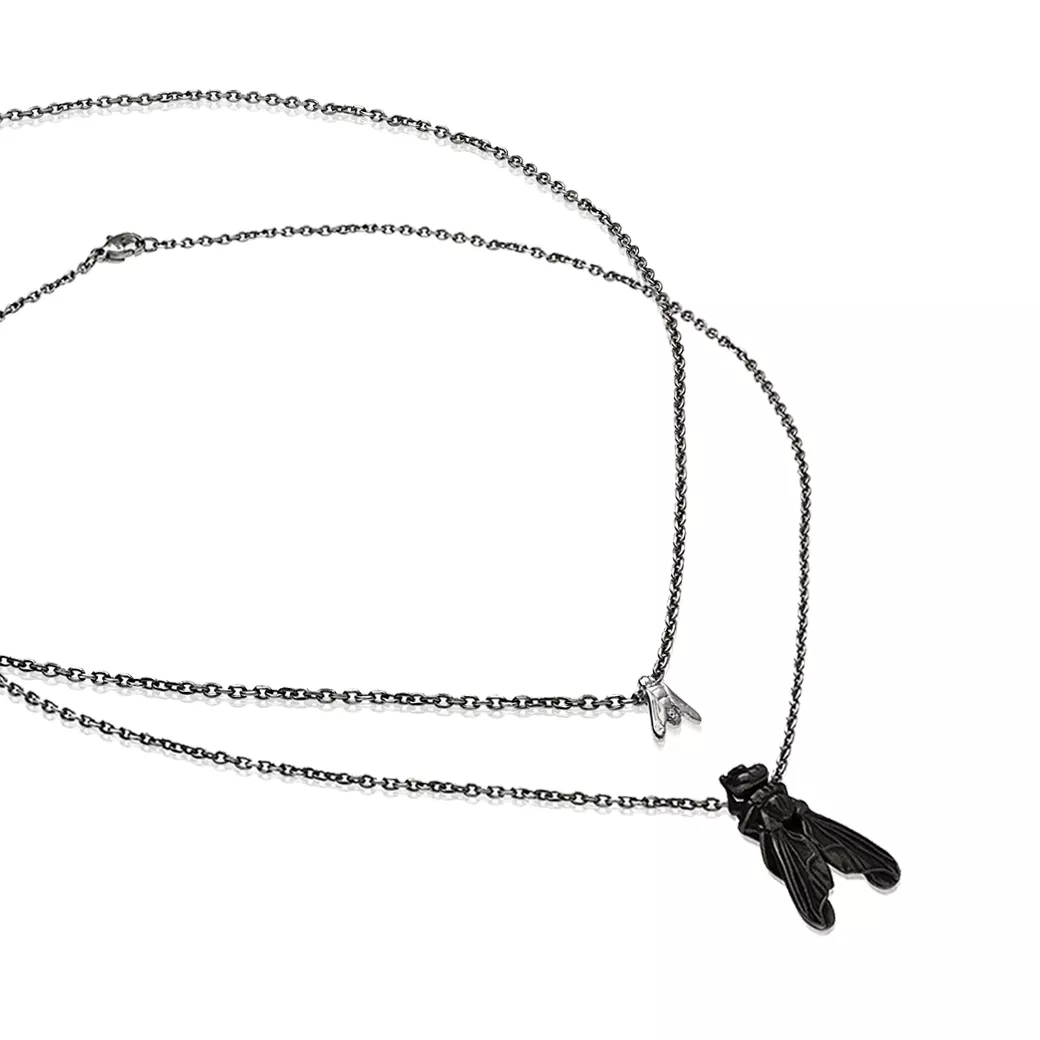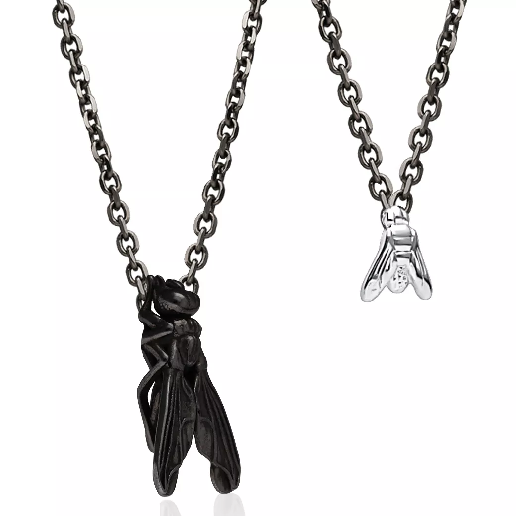 Titanium Necklace Set with White and Black Gold Fly Motifs