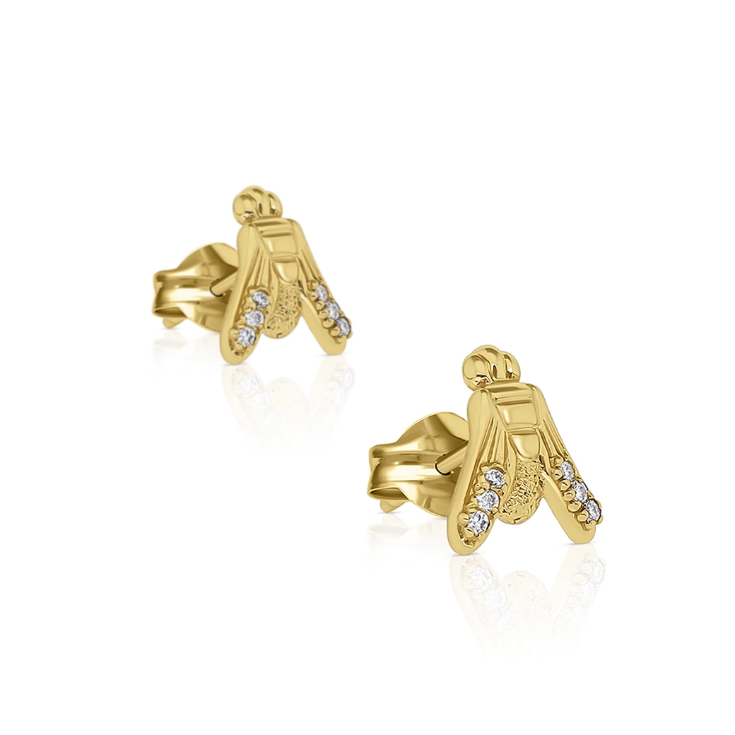 Unisex midiFLY yellow-gold diamond earrings: minimal gesture, absolute intention.