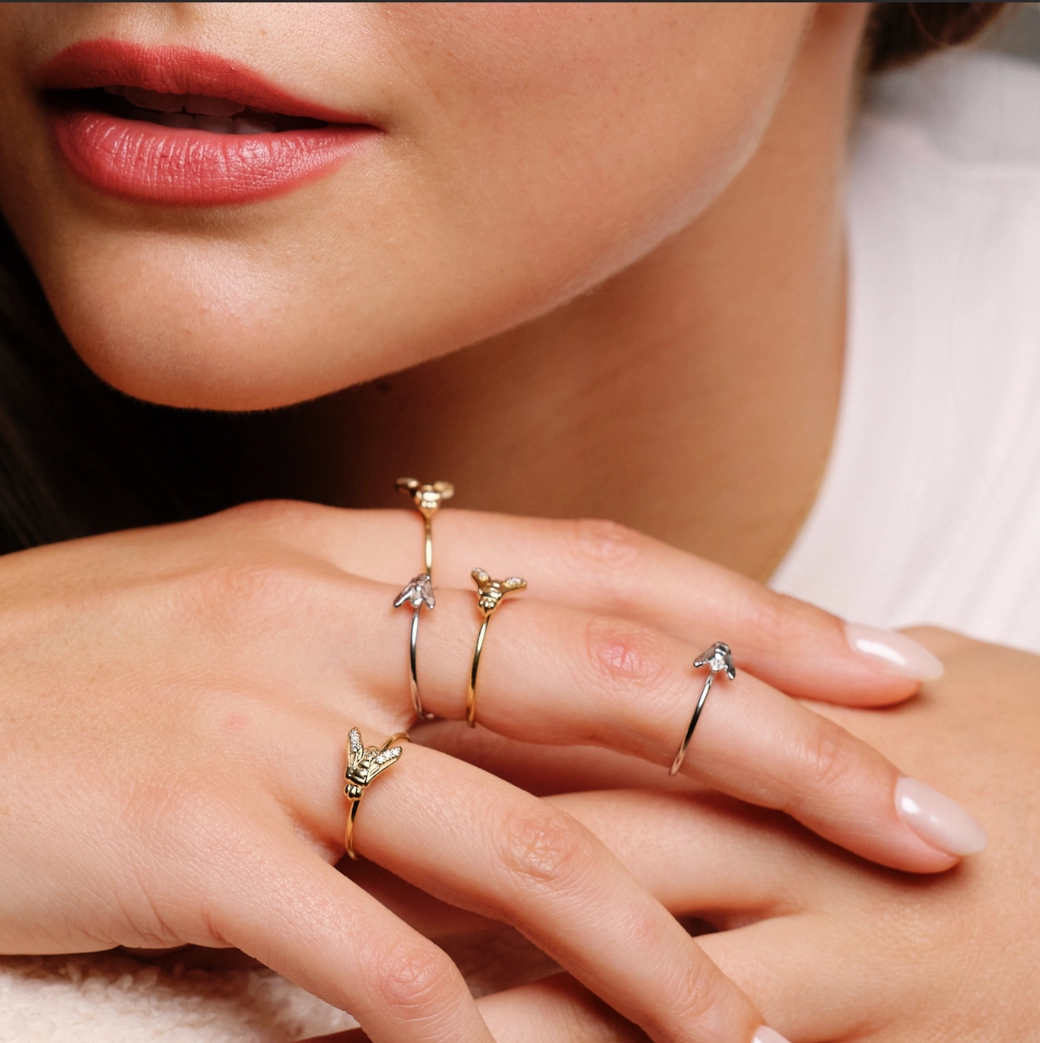 This unisex yellow gold diamond ring embodies the identity of ECH Jewelry in a single gesture. It belongs to the Essential collection, where every design is a symbol of choice. The midiFLY line places it between subtlety and strength — balance with character.