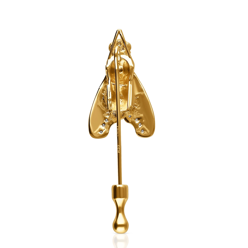Un motivo central, Big Fly de oro amarillo de 15 × 24 mm. Acento de diamantes éticos talla brillante. Cierre de aguja con sistema de presión.