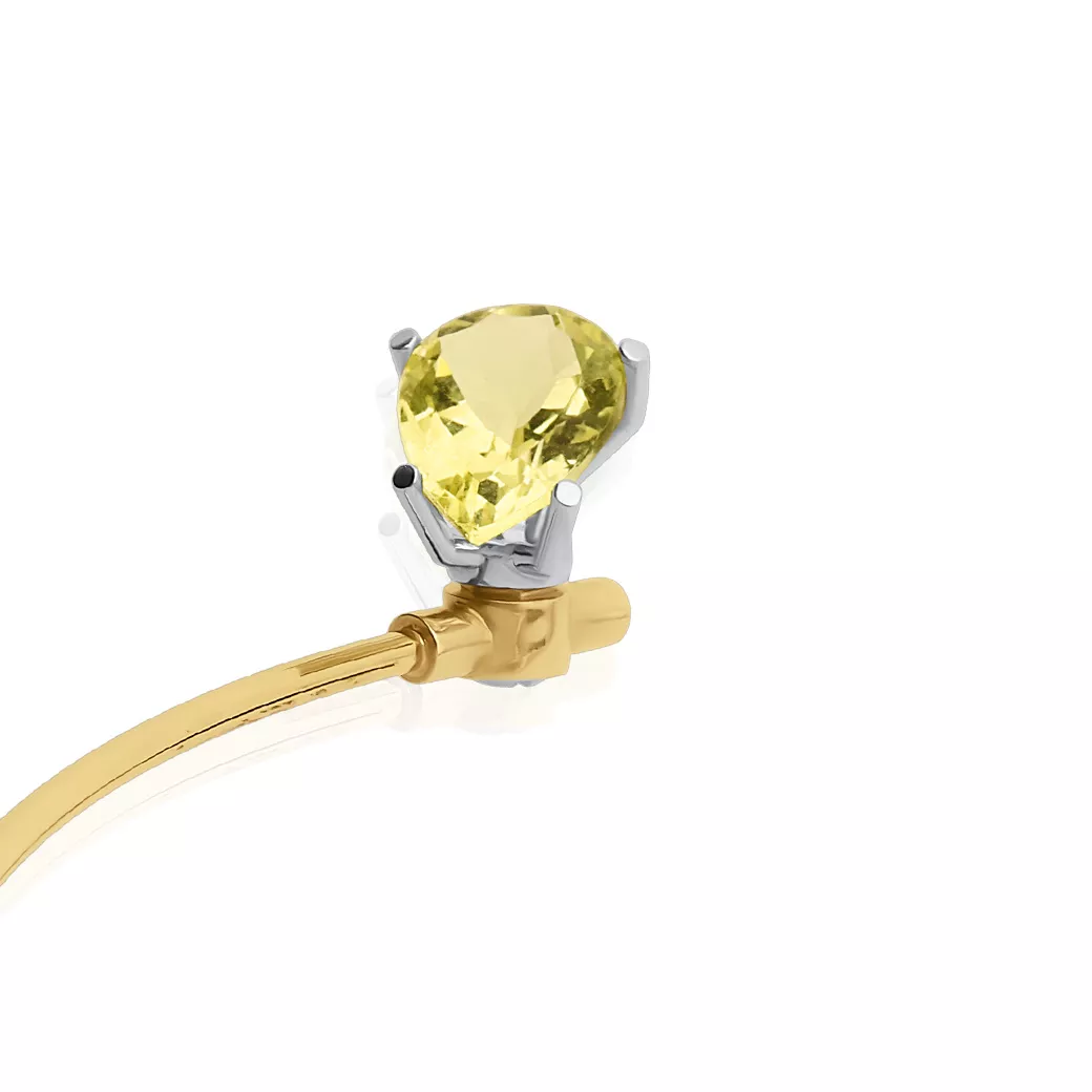 Gargantilla flexible en oro amarillo de 18 quilates con alma de titanio, con cuarzo lemon en talla pera, engarzado en oro blanco de 18 quilates. Pieza de alta joyería contemporánea de ECH, GEMS Collection, línea Limited Edition. Pertenece a la GEMS Collection, donde la piedra preside y la luz se convierte en lenguaje visual y emocional. Integrada en la línea Limited Edition, concebida como edición exclusiva centrada en gemas singulares.