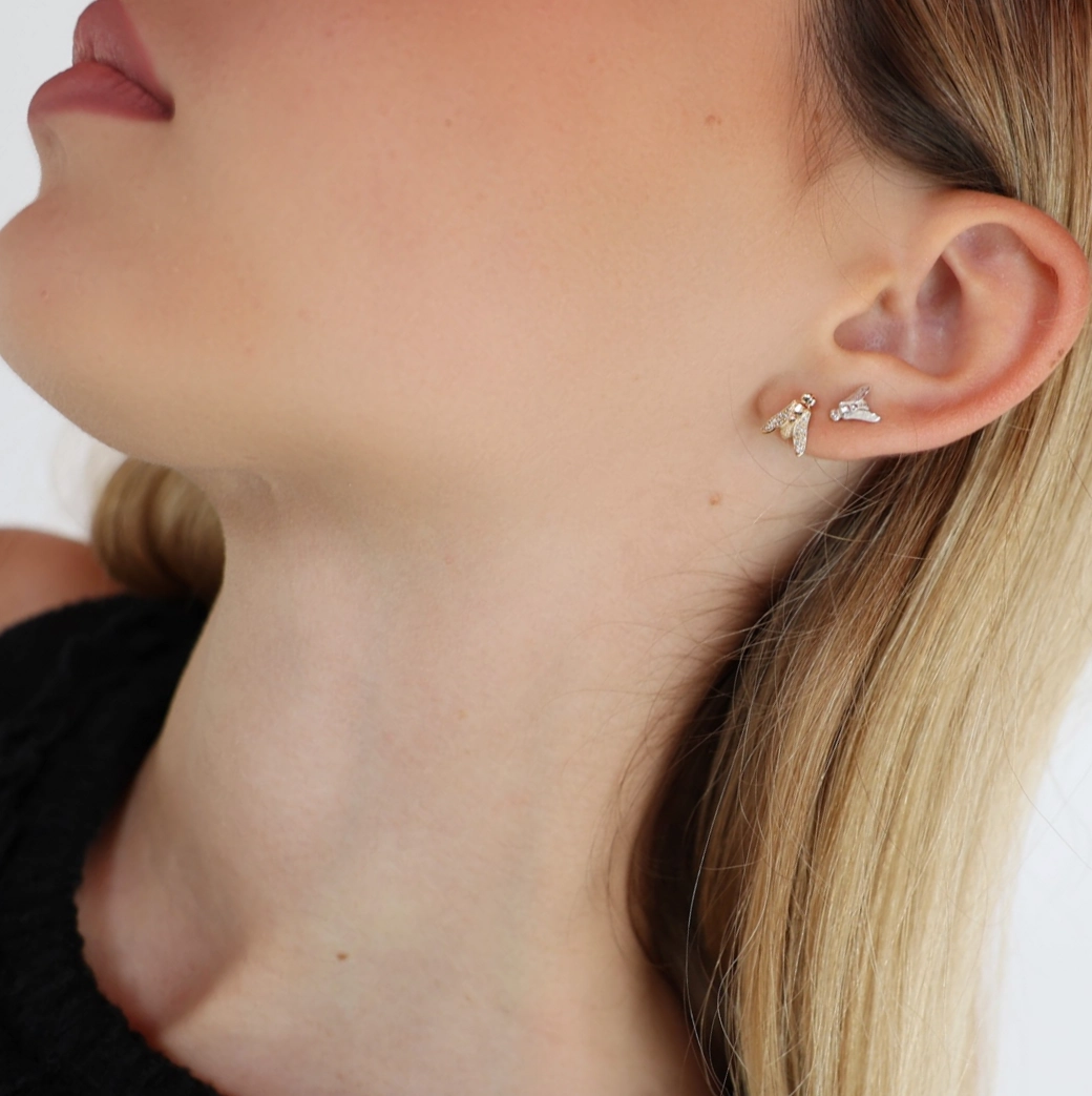 Este pendiente de oro blanco unisex de 8 mm pertenece a la colección Essential, línea miniFLY. Una pieza diseñada para ser precisa y directa. La colección Essential concentra la identidad de ECH Jewelry en su forma más simbólica. La línea miniFLY representa su gesto más contenido y radical: lo mínimo como elección.