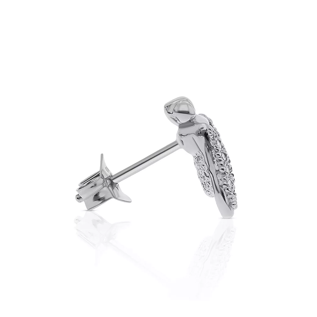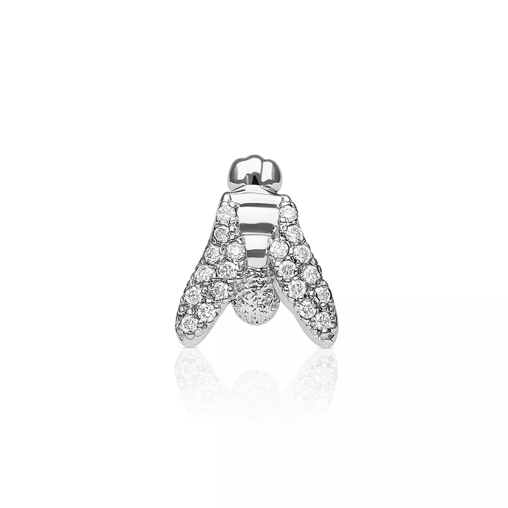 Este pendiente de oro blanco unisex es un gesto mínimo cobijado en la colección Essential, con la presencia imponente de la línea maxiFLY.