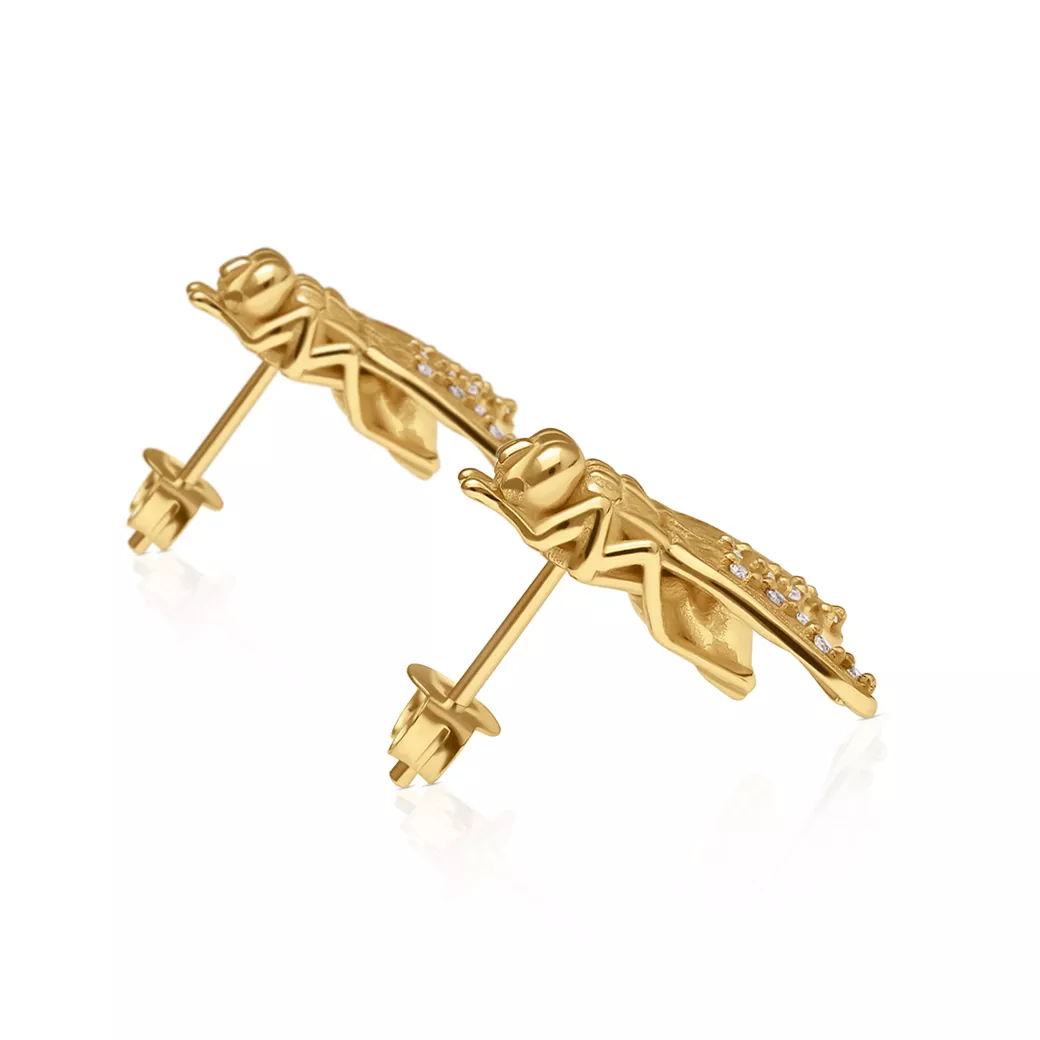 Este par de pendientes unisex de oro amarillo con diamantes pertenece a la colección Classique de ECH Jewelry, donde la naturaleza se convierte en símbolo y la precisión en arte.