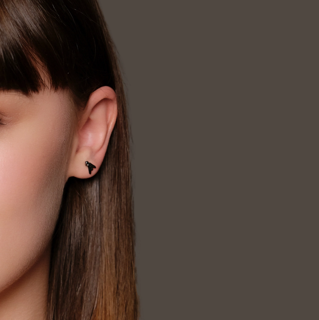 Pendientes unisex miniFLY de oro negro: la belleza de lo mínimo convertida en decisión.