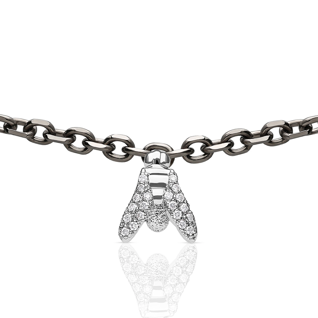 Máxima presencia en un motivo de 12mm. Luciendo diamantes blancos éticos en pavé completo, talla brillante, proyectando una luz nítida y uniforme. La cadena de titanio de 3.8 mm y 22 cm ajustable sostiene el motivo en oro blanco de 18K con contundencia, intensificando el resplandor de los diamantes.